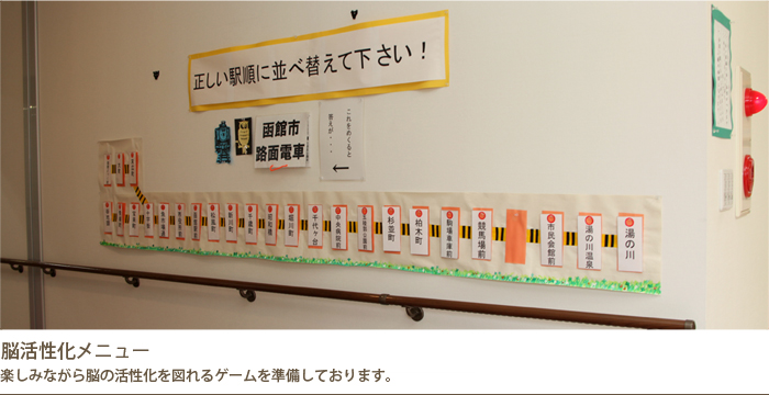理学療法士を中心に介護・看護職員が心身機能の低下したご入居者様に対し、あんじゅう七重浜でのあらゆる生活の場を通して、心身の再生を図るためのリハビリテーションを実践します。ご入居者様の自己決定に基づき目標を共有することで要介護度の進行(重度化)を出来る限り防ぐことに努めます。
